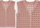 - Add sleeves: After separating for the armholes, go back and attach yarn to work a few rounds in each armhole for cap sleeves.