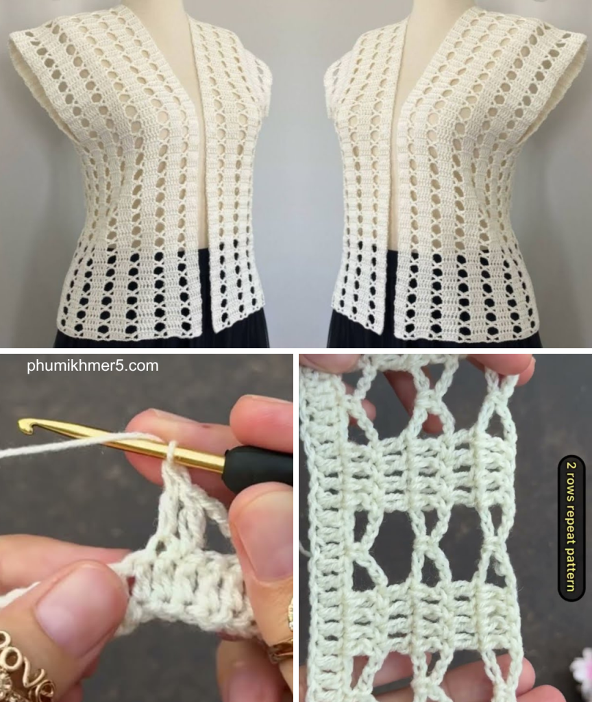 Creating a crochet women’s top or vest doesn’t need to be complicated. The Mesh V-Stitch is a perfect starting point for any beginner or seasoned crocheter who wants a light, stylish, and versatile garment. With just two rectangles and some seaming, you can create a summer-ready top or a cozy vest — personalized in your favorite colors and yarns.