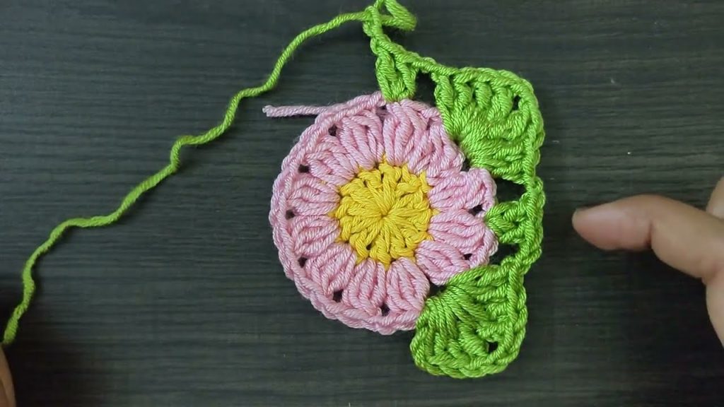 - Fasten off your petal color and weave in ends.