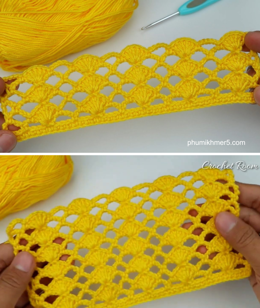 Unlike simple shell or solid stitch patterns, the CSTS utilizes a 4-row repeat that alternates between a subtle puff texture (the “Sunrise”) and a delicate V-mesh (the “Coastal”). This structure allows the piece to work up surprisingly fast for such a detailed look, making it ideal for high-end garments, throws, and luxurious scarves.