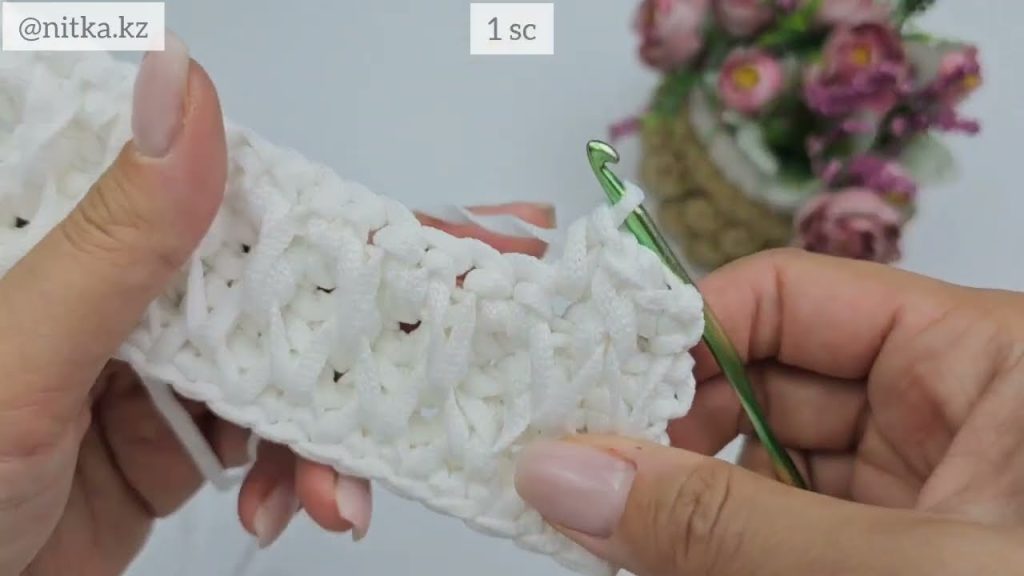 - Row 1 (Base Row): Leave one stitch. Insert hook into the back loop of the second chain from the hook. Make 1 sc and 1 sc in the back loop of each chain across.