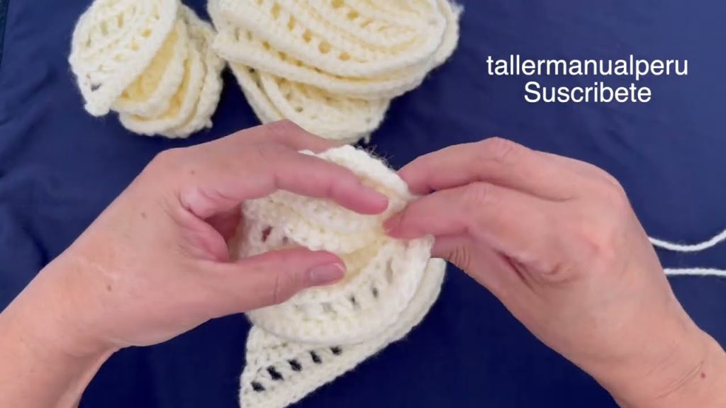 - Take the second large petal. Overlap the first petal slightly (superponer) and stitch the bases together.