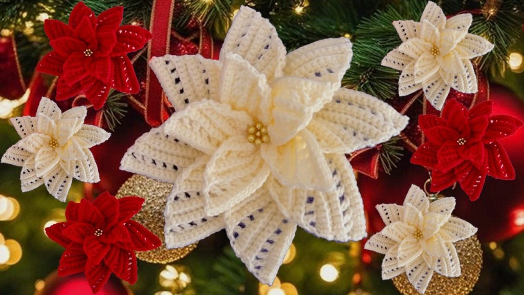 This tutorial presents a truly unique and beautiful method for crocheting a 3D Sculpted Poinsettia (Christmas Flower). Unlike traditional flat crochet flowers, this design creates striking relief and dimension by working each petal individually in rows, using a super-simple combination of only single crochet and chain stitches. The resulting flowers are sturdy, elegant, and perfect for all your holiday decorating needs!