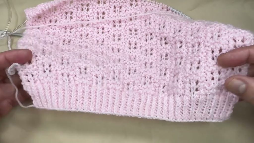 The main body of the jumper uses a basic but beautiful 5-stitch repeat lace pattern, separated by 5 purl stitches. The wrong side is always worked the same way, making it easy to memorize.