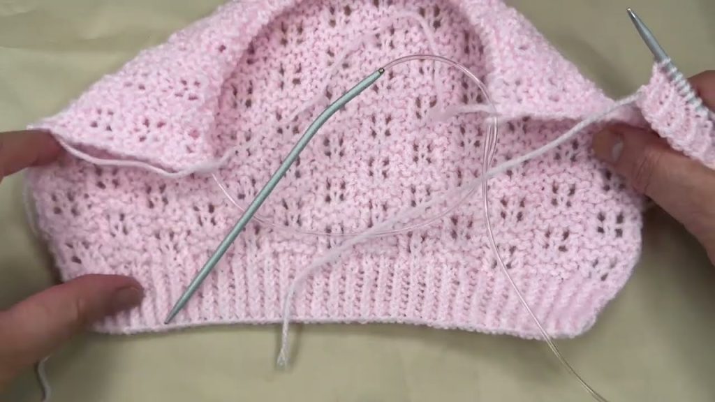 - Pick Up: Pick up and knit stitches along the entire neckline edge, including the held stitches from the front panel and the garter band edges of the back panels. Aim for an even count—the video picked up approximately 52 total stitches.