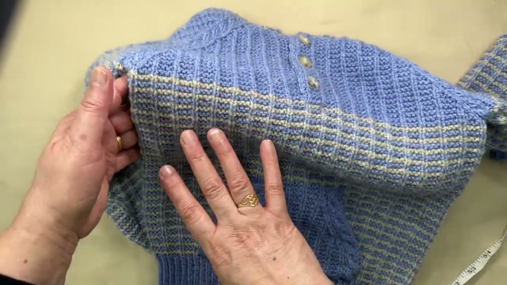 - Button Band: Pick up stitches along the front opening, work in ribbing, and add buttonholes.