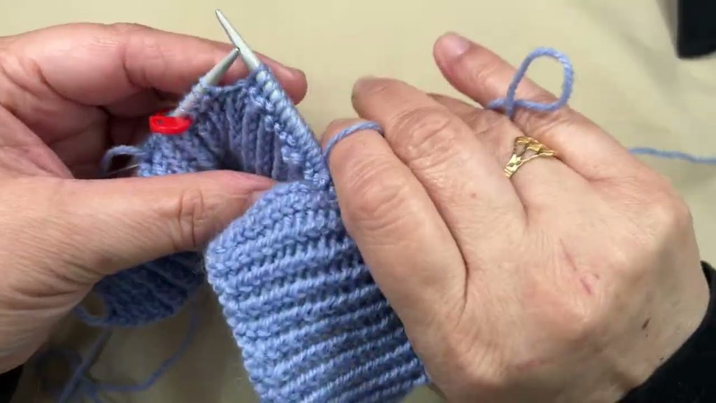 - Work 1×1 ribbing (K1, P1) for 1.5 inches.
