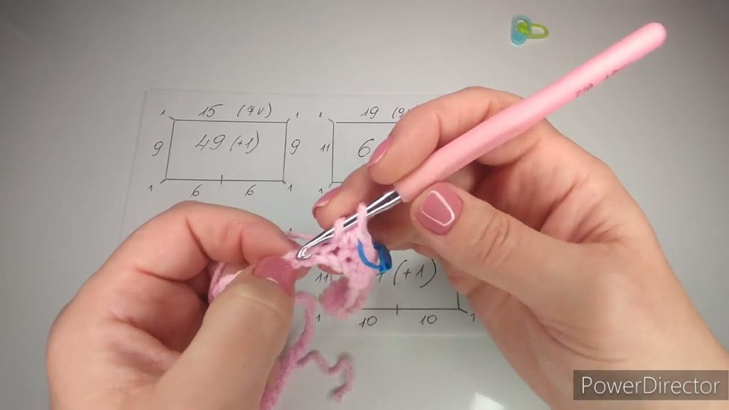 - Corner: Shell (3 DC) in the marked center stitch. Move marker to the 2nd DC of the Shell.
