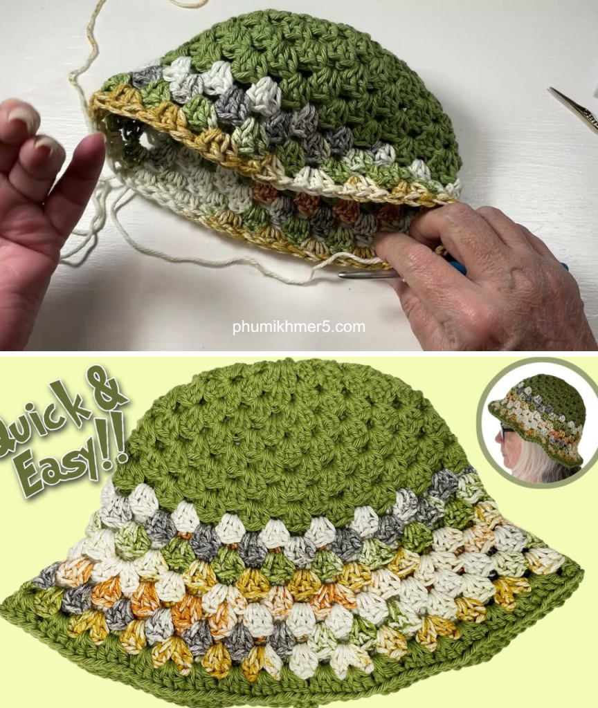 Get ready for summer with this incredibly fast and stylish Granny Cluster Bucket Hat! Inspired by the clear, step-by-step tutorial from Knotting Hook Crochet, this pattern uses the classic granny cluster technique to create a breathable, flexible fabric perfect for warmer weather. This pattern is designed to be easily adjustable and includes optional instructions for color changes to create a bold, variegated look.
