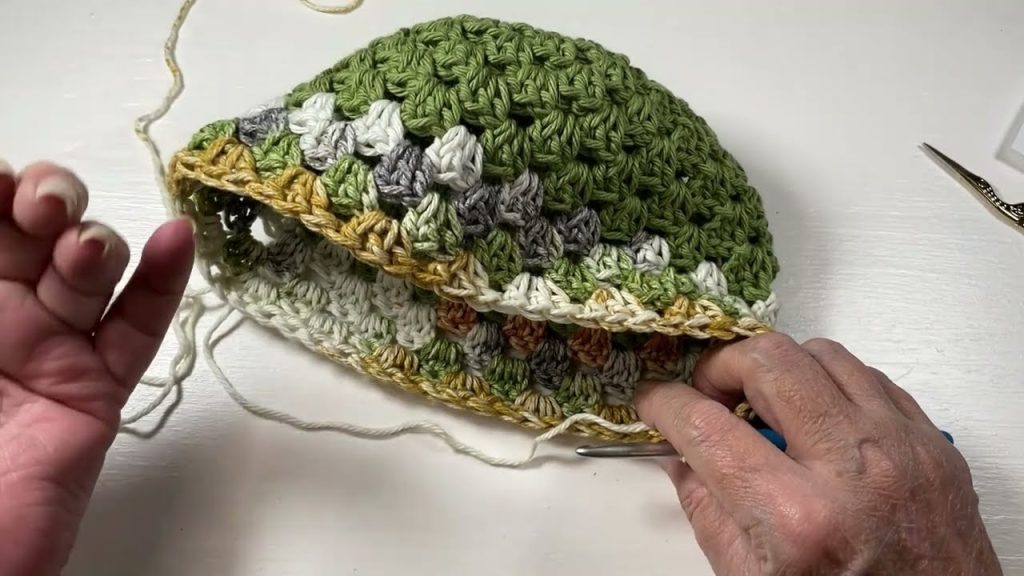 - Repeat this pattern for 5 rounds, or until the hat reaches the top of your ears/desired point before the brim begins.