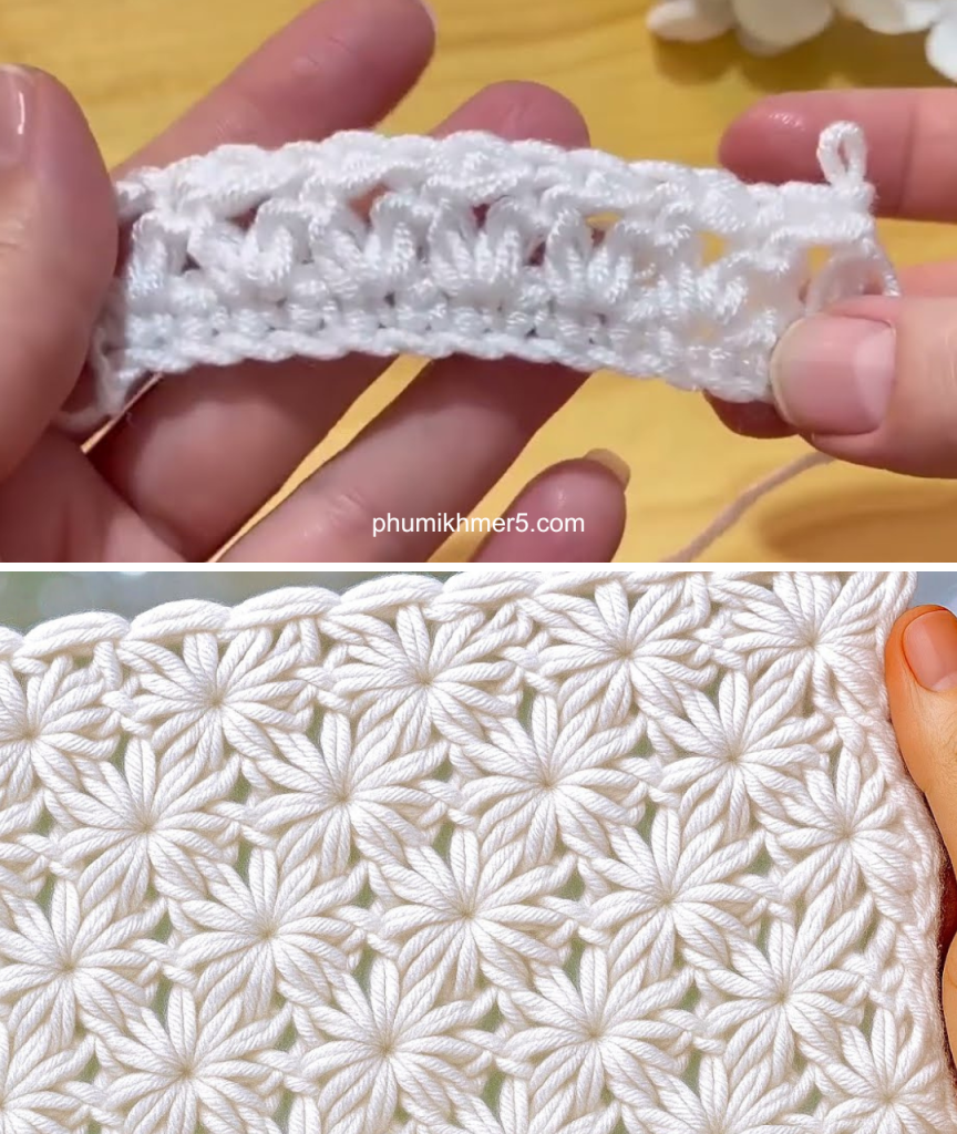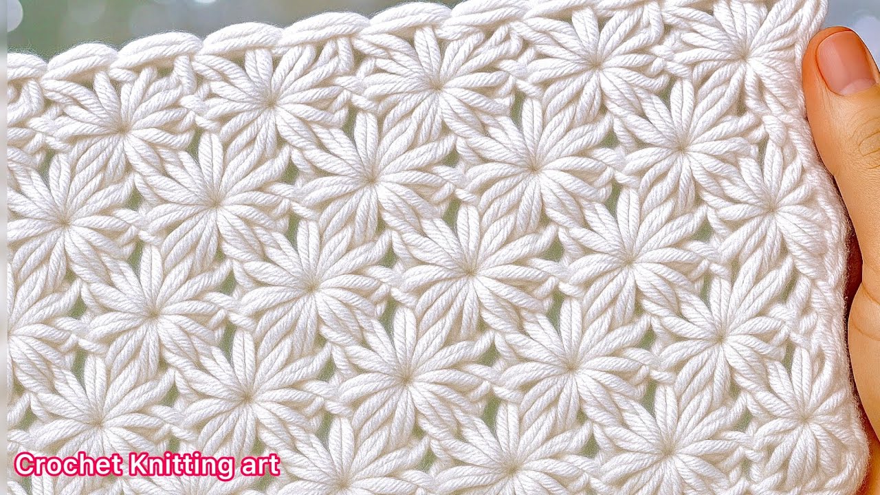 Inspired by the gorgeous, textured lace demonstrated in the video So Easy, So Beautiful! Must Try Crochet Stitch for Beginners! by Crochet Knitting art, this pattern uses a simple two-row repeat to create a fabric that is both airy and wonderfully cozy. We call this the Whispering Petals Stitch because the delicate clusters peek out from a surrounding web of lace, making it an ideal choice for a luxurious shawl, scarf, or baby blanket.