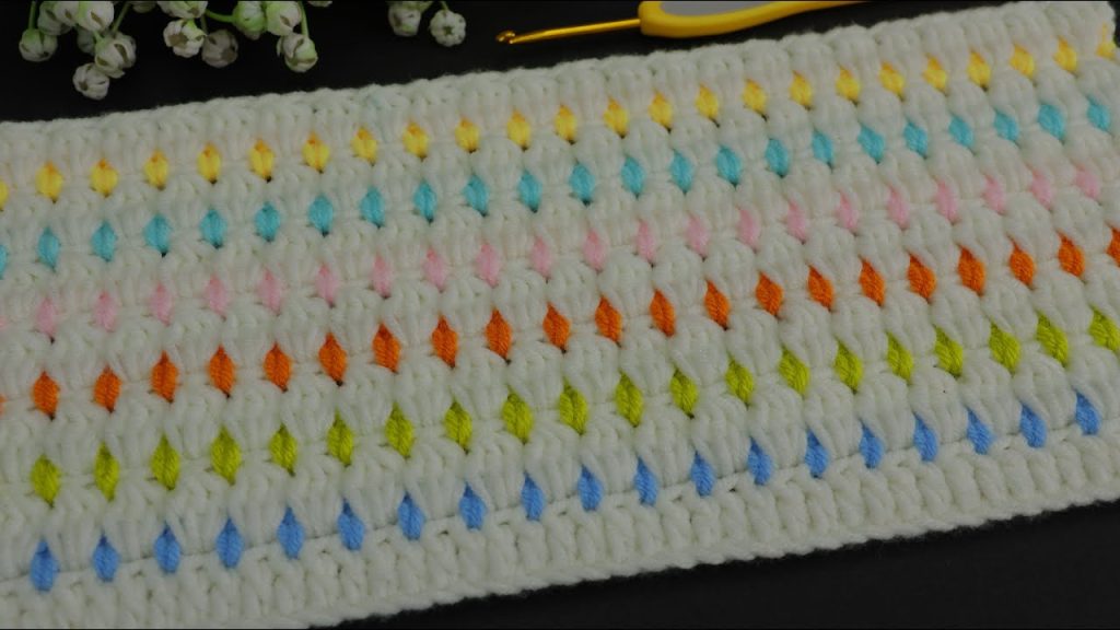 - Repeat Rows 3–6 until the blanket measures approximately 38 inches long, or desired length.