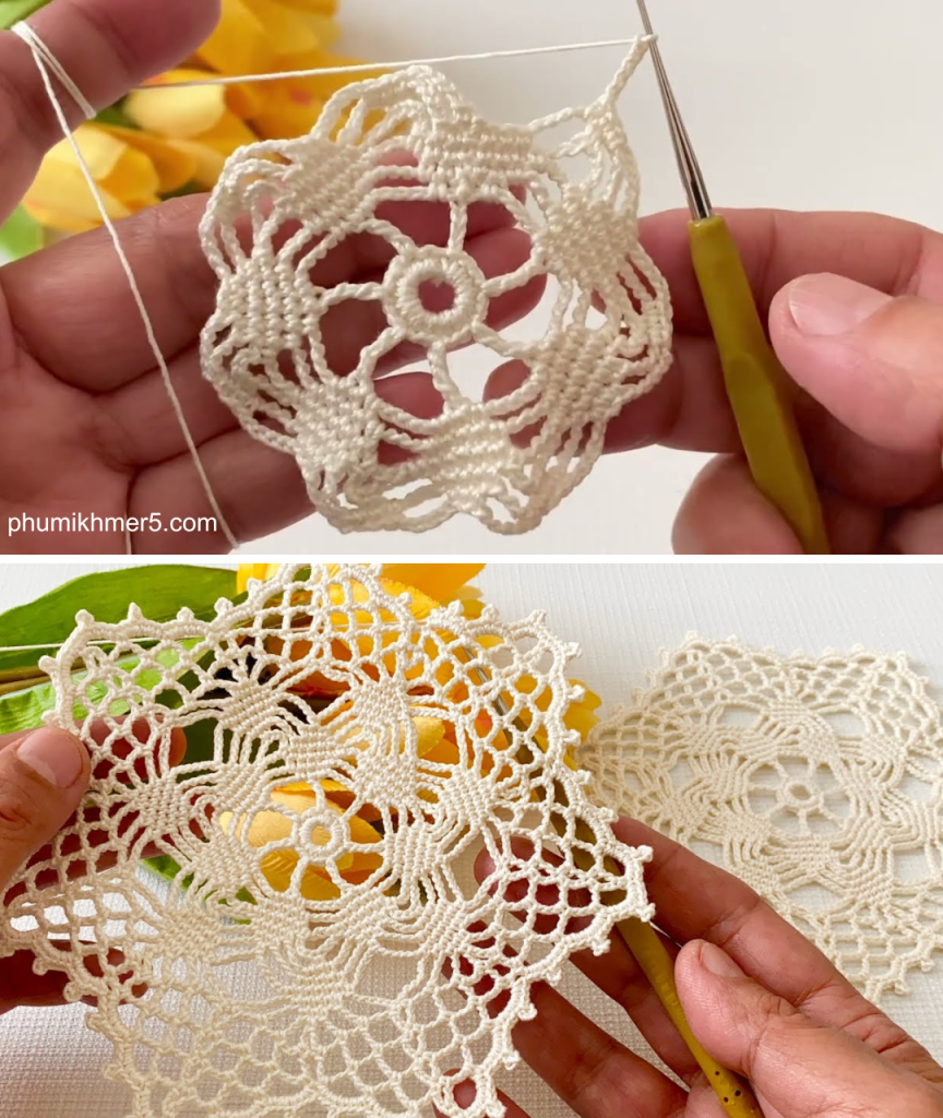 Inspired by the stunning and intricate design of the “New Design Crochet Motif” video from Crochet Knitting Therapy, this pattern utilizes a unique, multi-layered stitch combination to create a beautiful, geometric fabric. We’ve named this piece the Sunburst Mandala Runner for its radiant, medallion-like appearance when the motifs are joined.