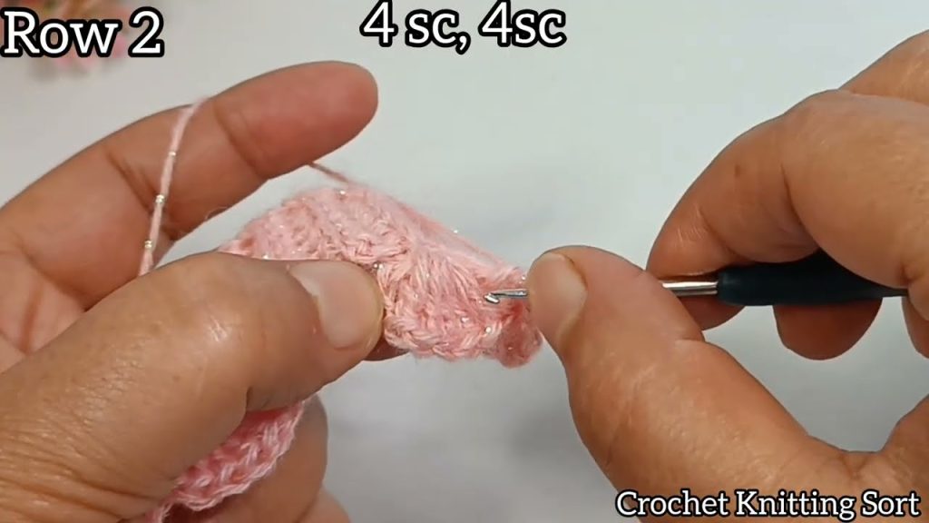 - DC in the 4th ch from hook (the skipped 3 ch count as the first DC).