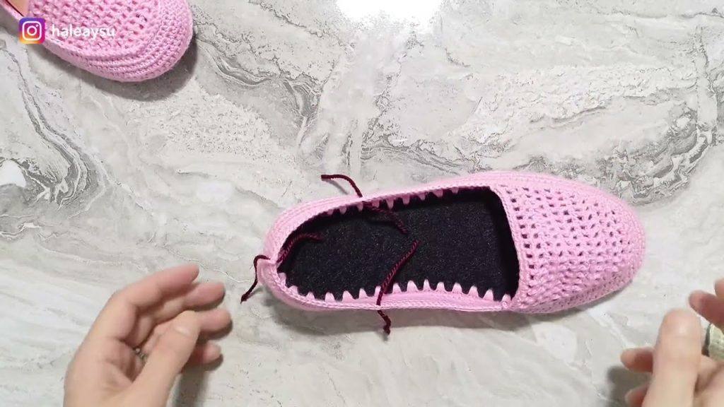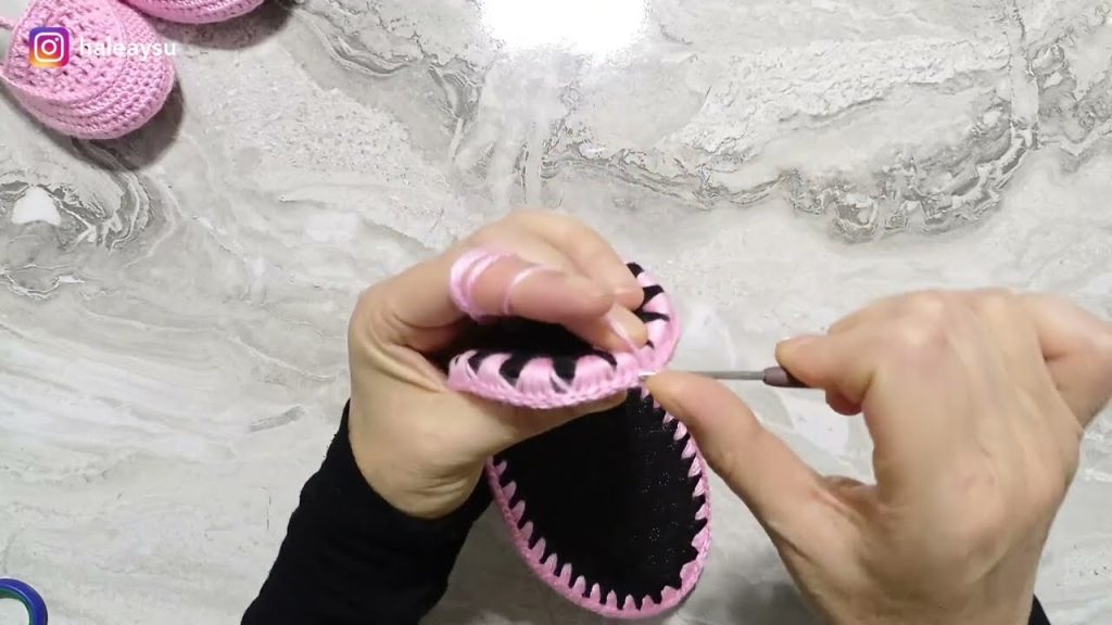 - Preparation: Sl st around the entire perimeter of the sole using the inner loop of the tatted edge, joining back to the starting point. (This creates a clean foundation and leaves the outer loop for final edging later).