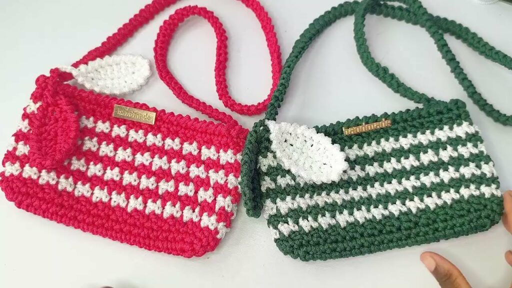 - Crochet Strap: Ch 80–100, then sc across to make a flat strap; sew on both sides