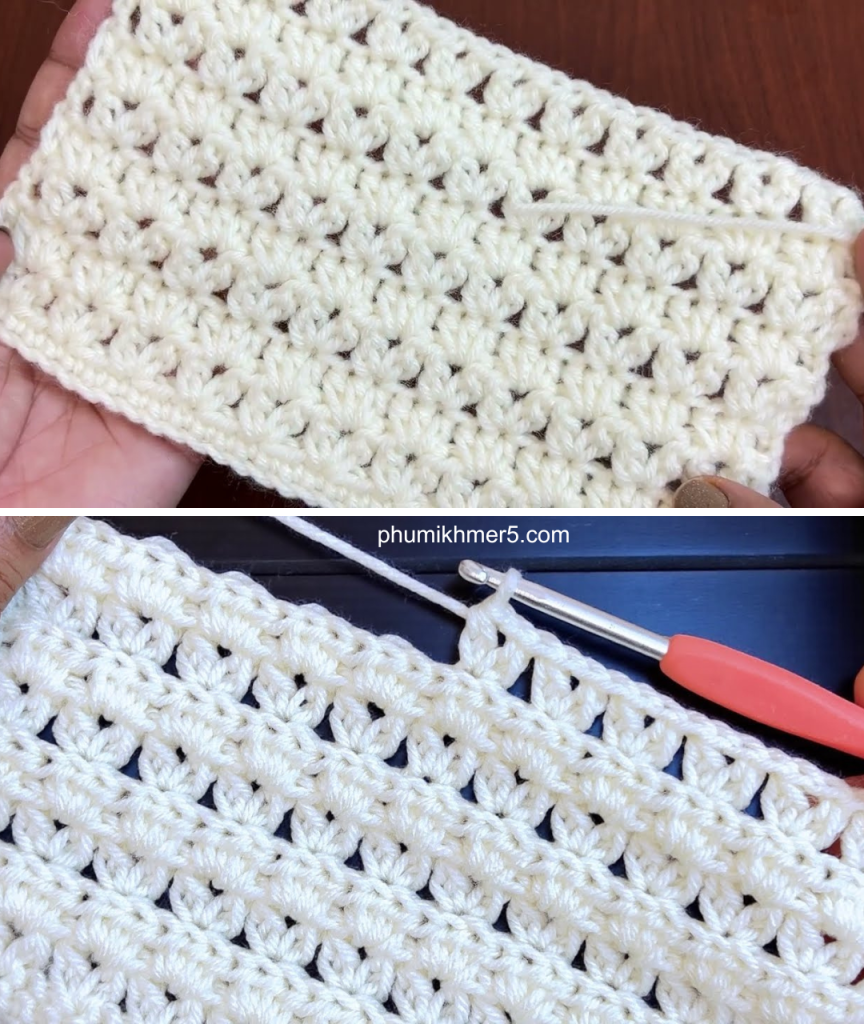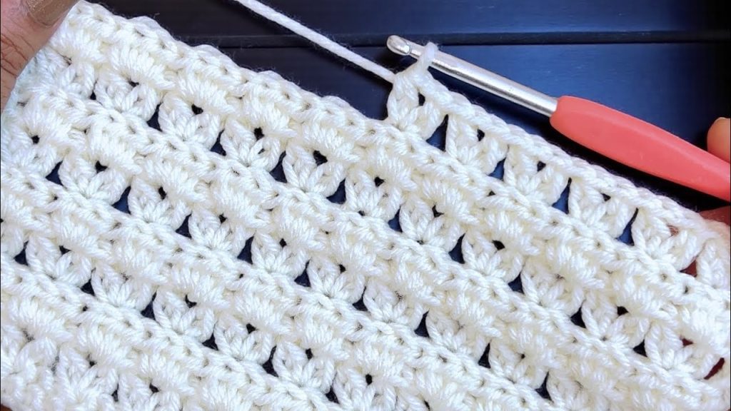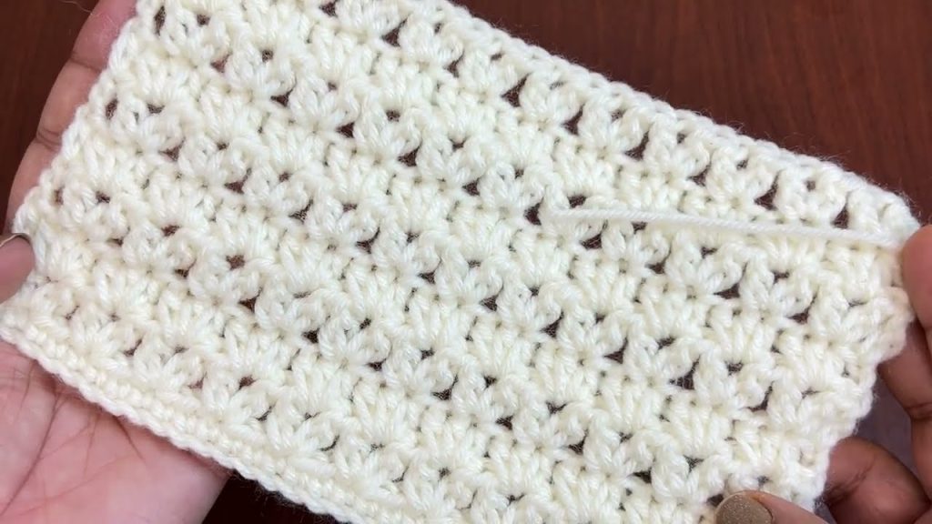 Inspired by the stunning, textured stitch featured in the video “🙋♀️My grandmother taught me this beautiful stitch! A very easy and beautiful crochet pattern” by WooL Work, this pattern creates a dense yet flexible fabric with a lovely repeating fan and trellis design. We call this the Moroccan Trellis Stitch for its rich, interlocking appearance that resembles geometric tilework.