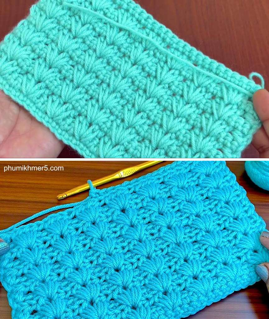 Inspired by the “EASY Crochet Pattern for Beginners!” tutorial by WooL Work, this pattern features a simple yet elegant stitch that creates a textured, plush fabric with a beautiful drape. We call this the Cloud Bloom Stitch because the repeating blocks resemble soft, puffy floral clusters nestled in a delicate mesh. This two-row repeat is highly relaxing and perfect for large projects like baby blankets, scarves, or wraps.