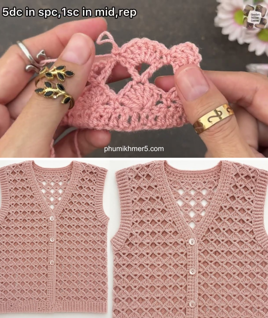 To give the vest a clean, structured finish, add a simple single crochet border: