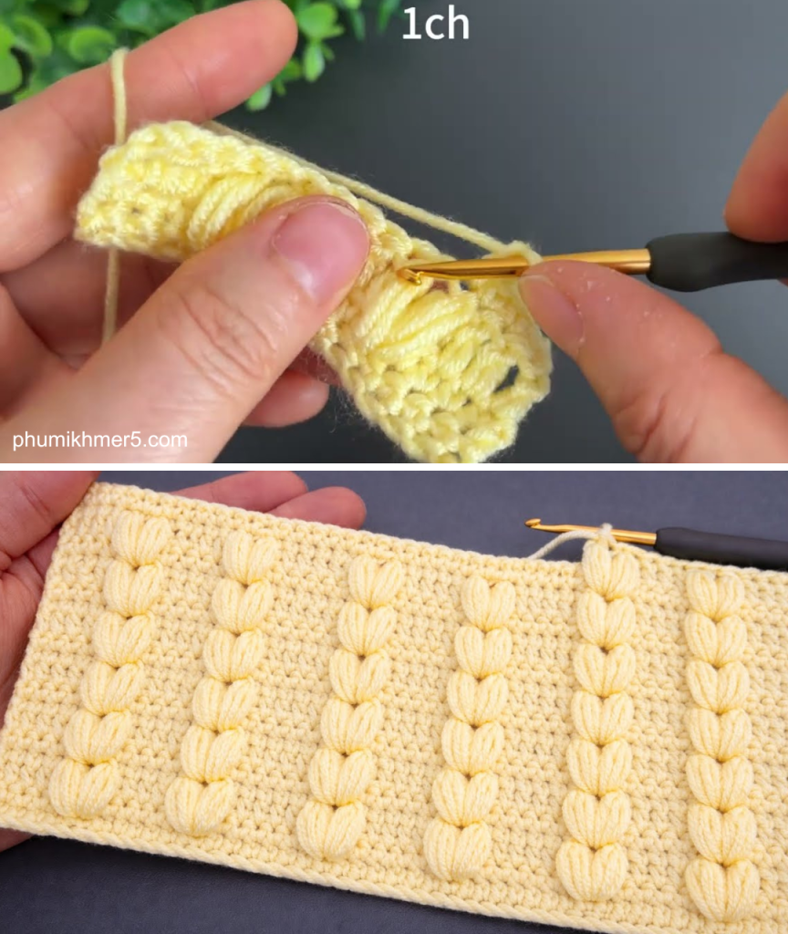 ✔ Keep your tension consistent — this stitch is forgiving, but even tension helps texture shine